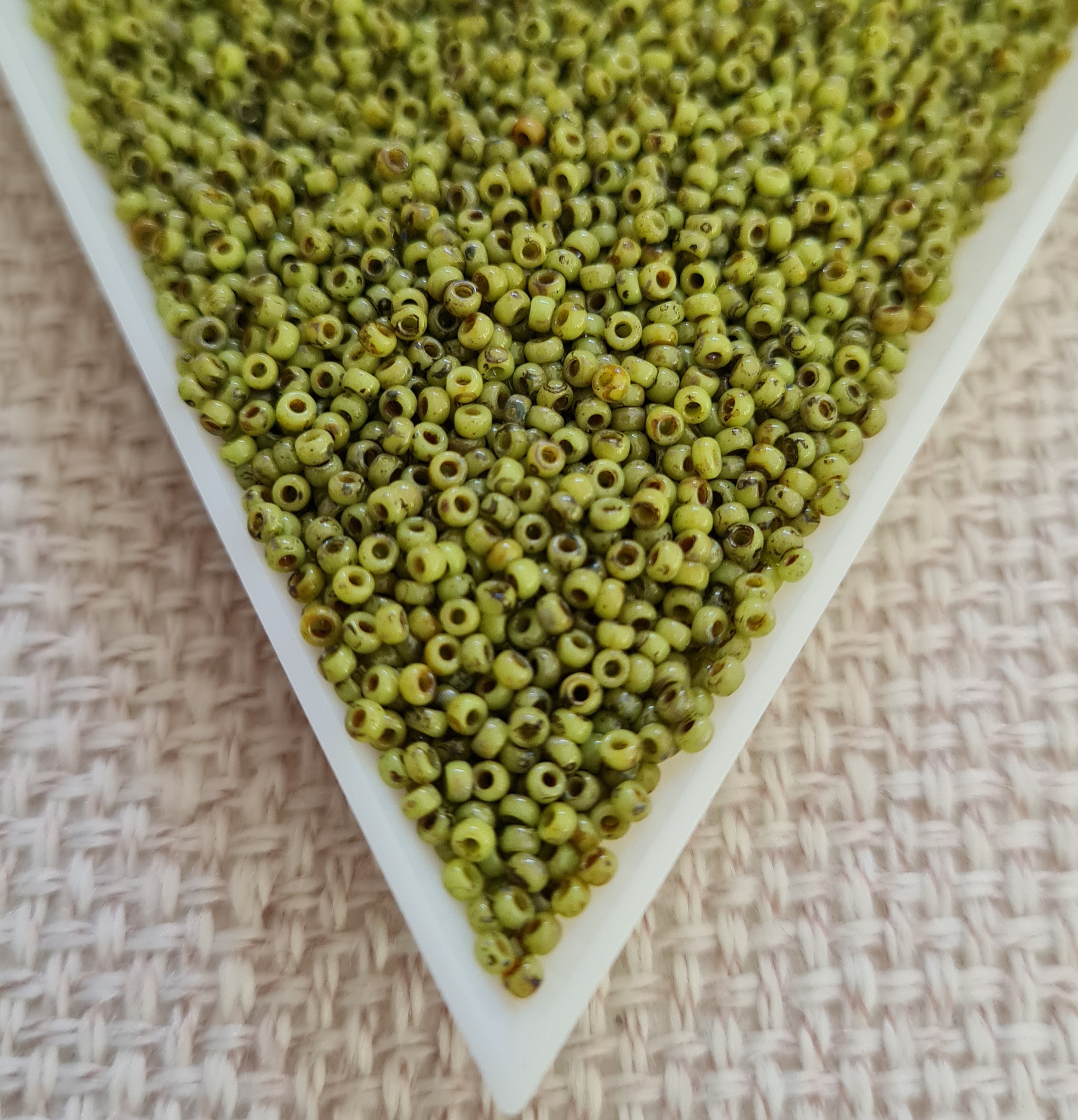 Seed bead 15/0, Picasso Opaque Chartreuse, color 4515, 5gms